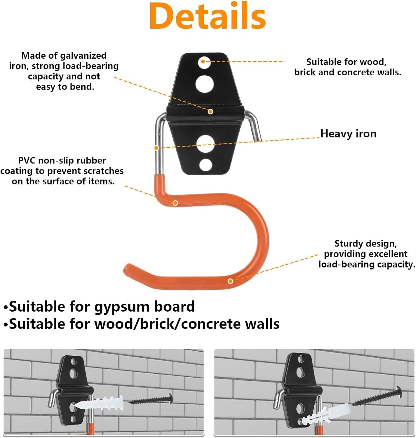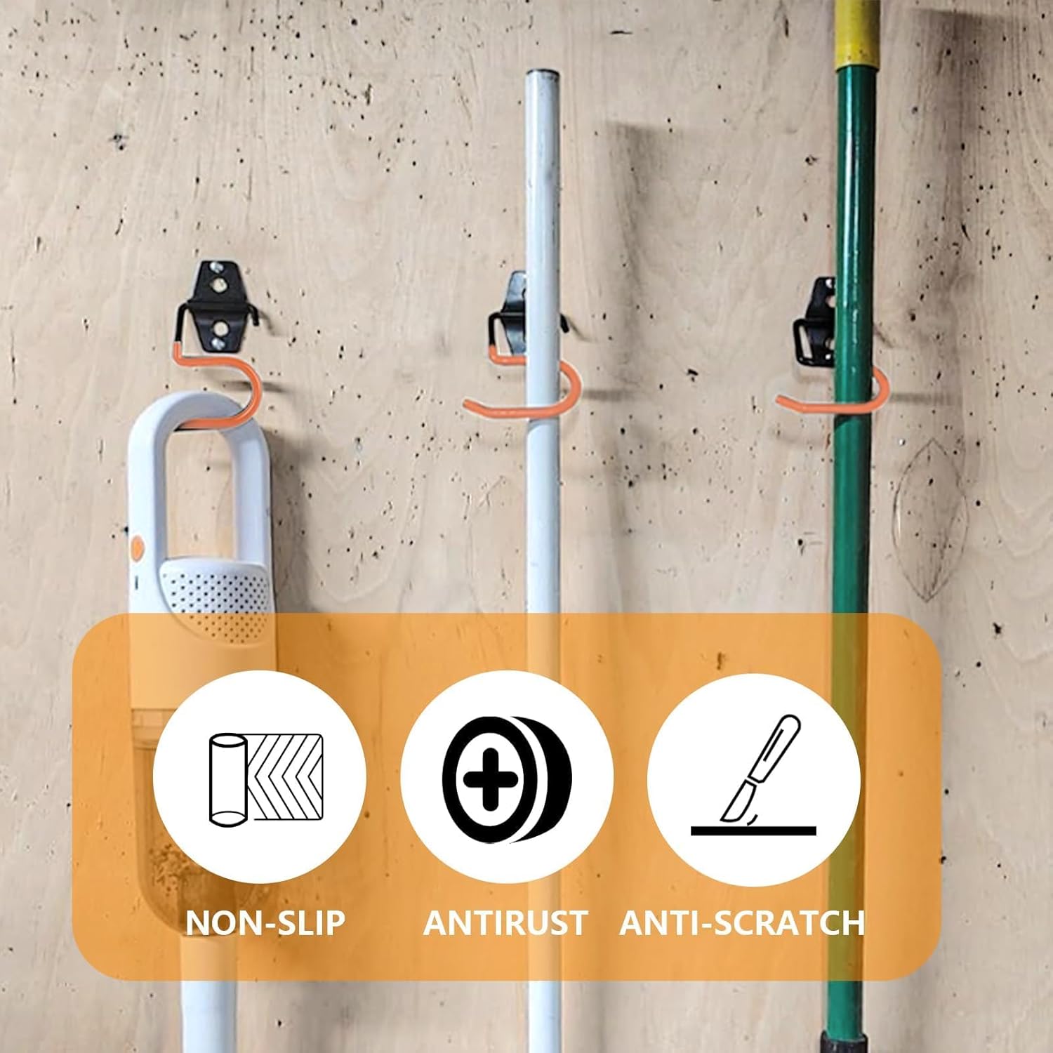 【Oungy 16 Pack Metal Garage Hooks Broom Holder S Hooks Heavy Duty Metal Large S Hooks and Broom and Mop Holder for Mop Shovel Rake Shed Garden Lawn Yard】Get organized with 16 heavy-duty S-hooks featuring a non-slip orange finish. Each galvanized iron hook holds up to 77 lbs and comes with complete mounting hardware for various surfaces. Perfect for garages, gardens, and tool sheds to keep tools accessible year-round. A practical storage solution for homeowners and DIY enthusiasts.【Specifications】Material: MetalColor: OrangeSize : 2.8x3.6 inchPackage Included:16 x Metal Garage HooksNote:Please allow slight size errors due to manual measurement.