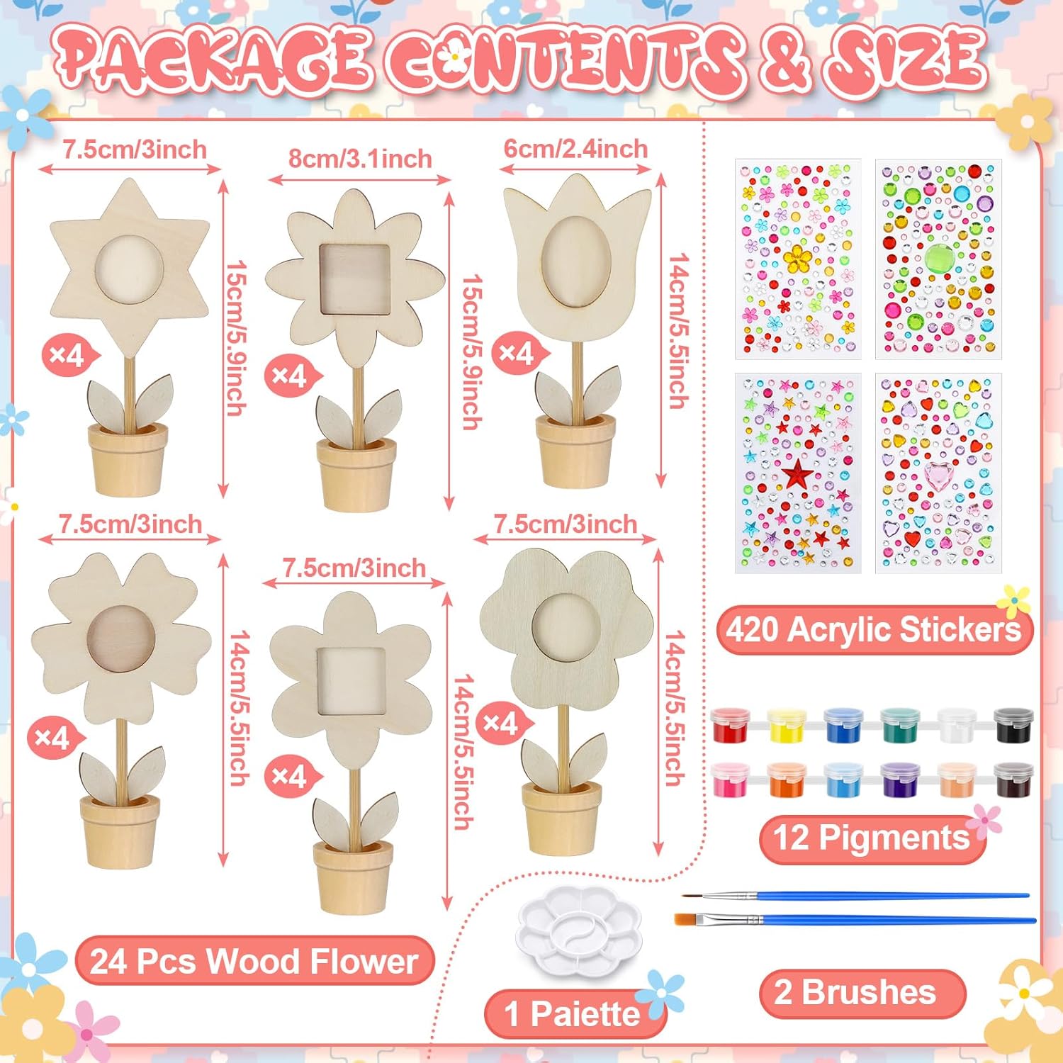 | Included Components | 1 Set of painting tool, 24 x Flower pot wood frames, 4 Bags of gem stickers |