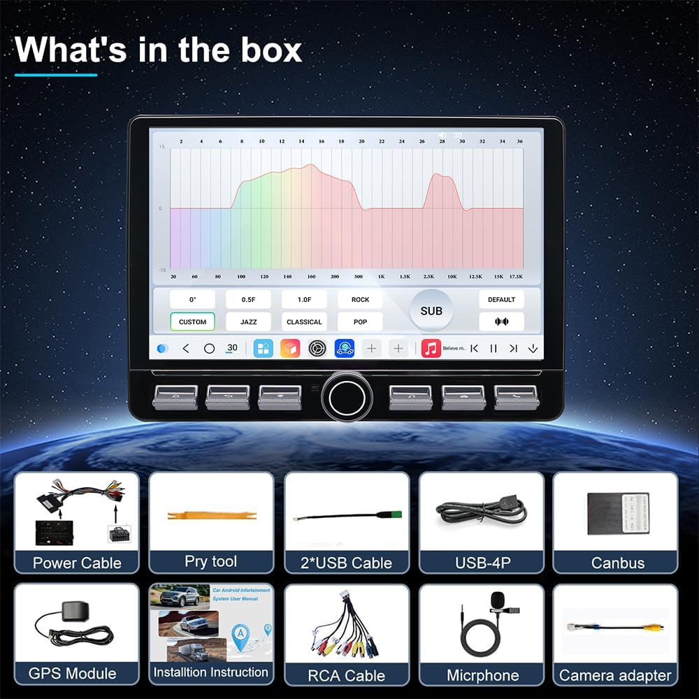 | BuiltIn Media | Android system Car radio, GPS module,Radio Antenna,USB cable,RCA cable,Microphone, Instrucion of installation,User Manual,Pry tool, Wireing harness with canbus box |