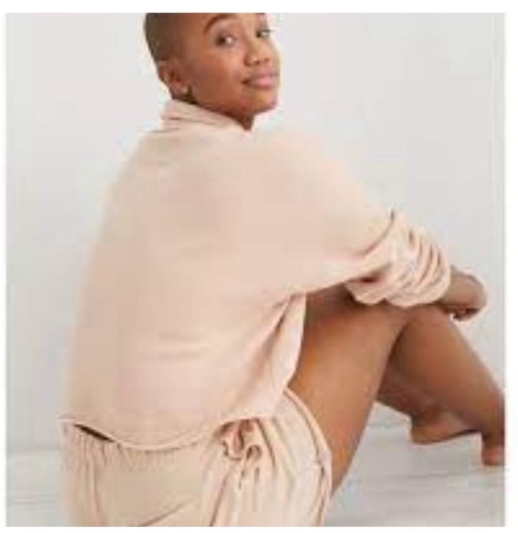 Aerie Henley Button Oversized Peach Cropped Sweatshirt