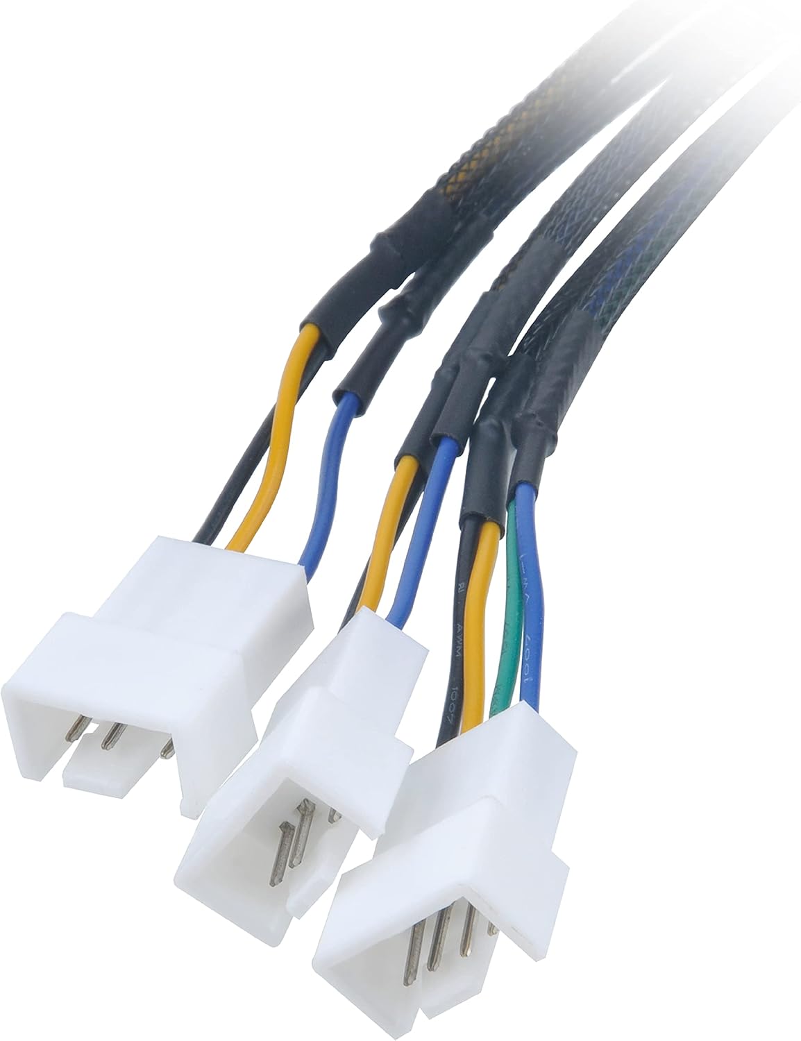 Product Description Akasa FLEXA FP3SFEATURES[ PWM fan Splitter Cable ] - Allows 3 computer case fans to be connected to a single motherboard fan header, compatible with 4-pin PWM fan connectors.[ High Efficiency ] - Creates greater flexibility for motherboard and CPU cooling, providing additional fan connectors to enhance airflow in the computer chassis and accelerate heat dissipation.[ 15-pin SATA PSU Connector ] - Connect the power supply to power the PC chassis fan, ensuring maximum efficiency between the motherboard and the CPU cooling fan.[ 3 Male Fan Connector ] - The cable includes 1 male 4-pin connector and 2 male 3-pin connectors (RPM signal pins are omitted), each of which is connected to 4 -pin PWM fan compatible.[ Quiet Experience ] - Smart connection of three fans from single motherboard PWM header enables near-silent operation of performance systems.SPECIFICATIONApplication: 3 PWM fans from single PWM headerDesigned for: 4pin PWM fansCable length: 30cmPSU connector: SATA powerFan connector: 3 x 4pin PWM (one with RPM feedback for motherboard)Product code: AK-CBFA06-30 Set Contains: AK-CBFA06-30 PWM Splitter Cable