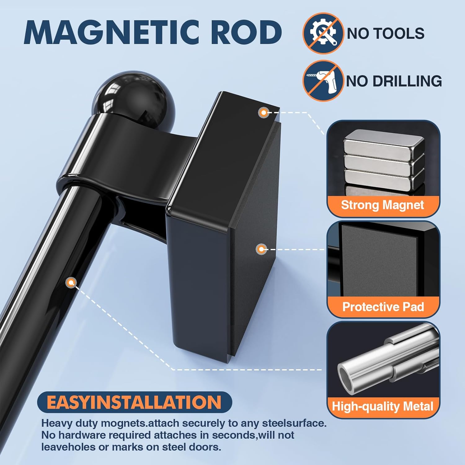 Magnetic Curtain Rod for Metal Doors with Adjustable length, from 16 inches to 28 inches, suitable for any steel and iron surface, diameter 1/2 inch