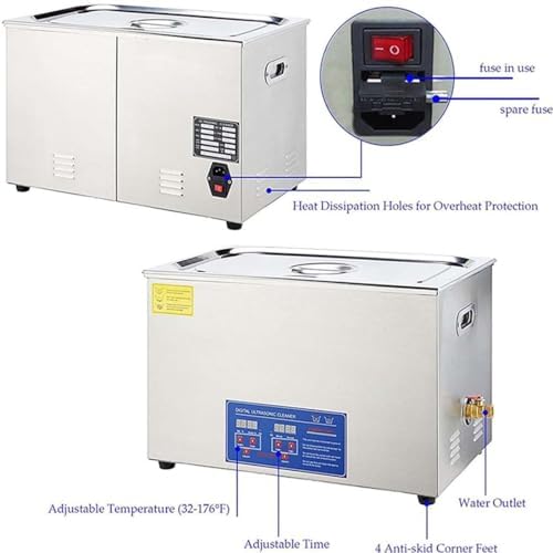 6L ultrasonics vinyl record cleaning machine This professional-grade ultrasonics cleaner is a must-have for vinyl enthusiasts and record collectors who want to properly clean their precious vinyl record collections and restore the highest audio quality. Powerful ultrasonics waves penetrate deep into every groove, removing any dust, dirts, and debris that may remain in your vinyl records. In addition, frees drying racks are provided for vinyl records to facilitate the drying of records. Specification Materials: 304 stainless steel Capacity: 6 liters1.6 gallons Heater power: 400W Ultrasonics power: 180W Adjustable time: 0-30min Operating temperature: RT-176°FRT-80°C Internal water tank size: 30X15X15cm11.8X5.9X5.9" Product size: 36.8X34X16cm14.5X13.4X6.3" Net weight: 5.2kg11.5lbs packing list: 1*Host
