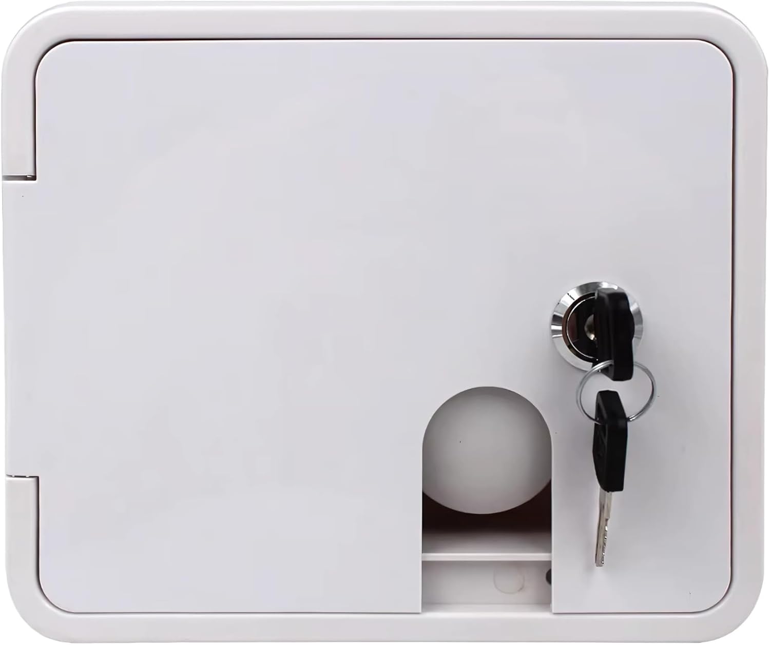 The SEAFLO Water Inlet Hatch is a high-quality gravity and pressure water fill hatch, designed for RVs, campers, trailers, motorhomes, and trucks. Constructed from UV-stabilized ABS with robust reinforcement, this lockable water inlet ensures a secure and reliable water connection for your fresh water tank. It features a 1/2" threaded connection, a 1-1/4" barb connection, and a 1/2" air vent, allowing for faster water fill rates. This durable, weather-resistant water hatch is easy to install and comes with two keys, mounting screws, and putty tape for a leak-free and secure installation.